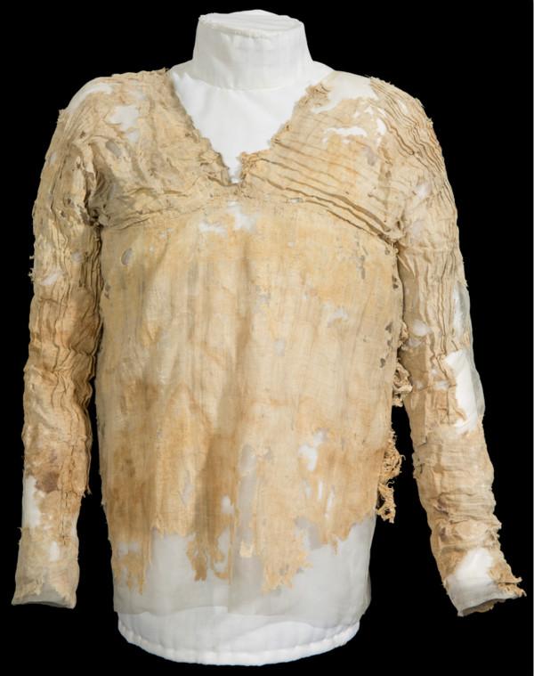 四 103年前发现于埃及Tarkhan镇的古埃及墓地的一件亚麻纺织服装,今年获得精确断代,原来这件衣服的年代是公元前3482—3103年间,是现存最早的人类纺织服装。