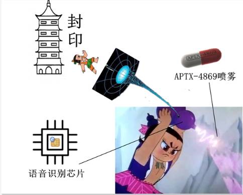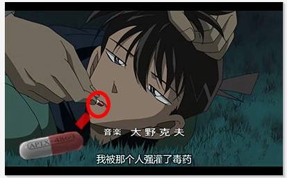 (3)APTX-4869喷雾:我们说过,物质不会凭空消失也不会凭空产生,宝葫芦的洞口这么小,是如何把这么大的物体吸收进去的呢?原理很简单,宝葫芦锁定目标后,会喷射出APTX-4869气雾剂,将人变小。这也就解释了为什么紫葫芦每次吸收的时候都会有一阵雾喷出来。至于APTX-4869是什么?看过名侦探柯南的肯定都知道,就是将工藤新一缩小变成柯南的那种毒药。