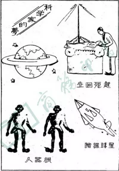 丰子恺发表在《东方杂志》上的漫画《科学家的梦》。机器人、星球探险,80多年前科学家们的梦想在今天大多数已经实现了。