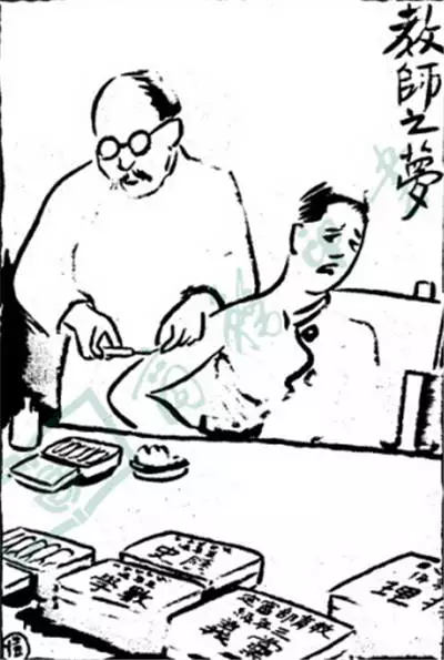 丰子恺发表在《东方杂志》上的漫画《教师之梦》。知识可以通过注射得到,这也是是很多学生的梦想吧……