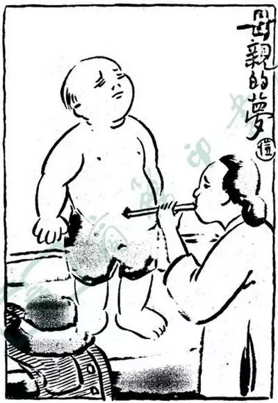 丰子恺发表在《东方杂志》上的漫画《母亲的梦》:孩子是这样“喂”大的,这是那个缺衣少食年代里母亲们无奈的梦想。