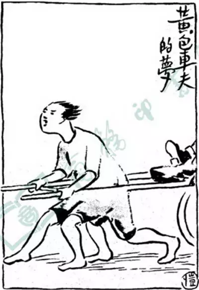 丰子恺发表在《东方杂志》上的漫画《黄包车夫的梦》。80多年后的今天,这个职业已经消失了。