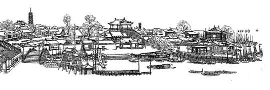 青浦区博物馆根据文献记载绘制的青龙镇复原图(局部)