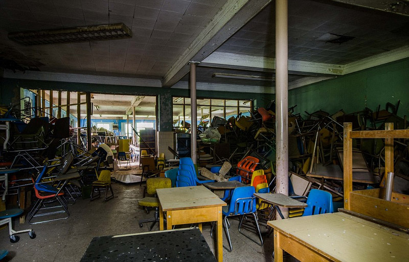 几年前,研究人员在位于美国佛罗里达州玛丽安娜地区的亚瑟•G•多齐尔男校(Arthur G. Dozier School for Boys)挖掘出了55具尸体,揭开了这所“死亡学校”长达百年的虐童历史。近日,一组照片公开了该校破败的内景。