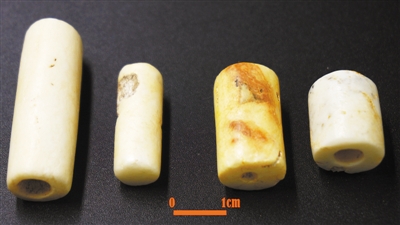 宁夏青铜峡鸽子山遗址出土的方解石穿孔装饰品(资料照片)。新华社发