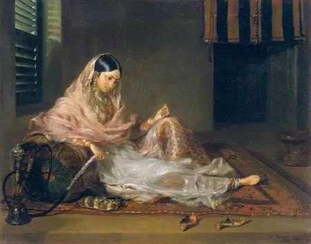 ▲孟加拉首都达卡的一位女子穿着平纹棉布,画于18世纪