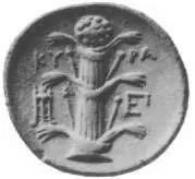 ▲利比亚昔兰尼发掘的古代银币上的罗盘草种子图样