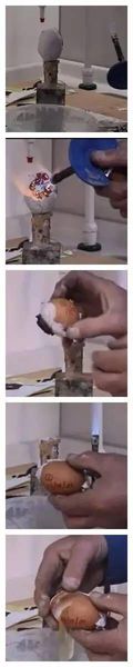 ▲在BBC录制的 BBC Tomorrow's World这个节目上,莫里斯·沃德用星岩包裹着一个生鸡蛋,然后用1500摄氏度的喷灯进行炙烤。最后可以看到鸡蛋完全没有变熟。