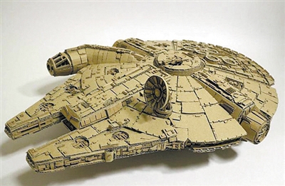 看到她的作品,你会惊叹于,粗糙的废纸板竟然拥有了不可思议的工业美感。那些模仿《星球大战》电影场景的机械作品,连螺丝、焊接缝都精细呈现,似乎只待引擎启动,从大野一美的小屋中飞驰出去。