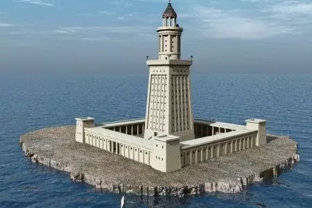 亚历山大灯塔 高达400英尺的亚历山大灯塔于公元前270年完工,以石灰岩和花岗岩建造,是当时仅次于胡夫金字塔的古世界第二高建筑。与其他建筑奇迹不同,它不带有任何宗教色彩,也并不是哪位君主的个人需求,纯粹为人民实际生活而建。灯塔的光亮在晚上照耀着整个亚历山大港,保护着海上的船只。
