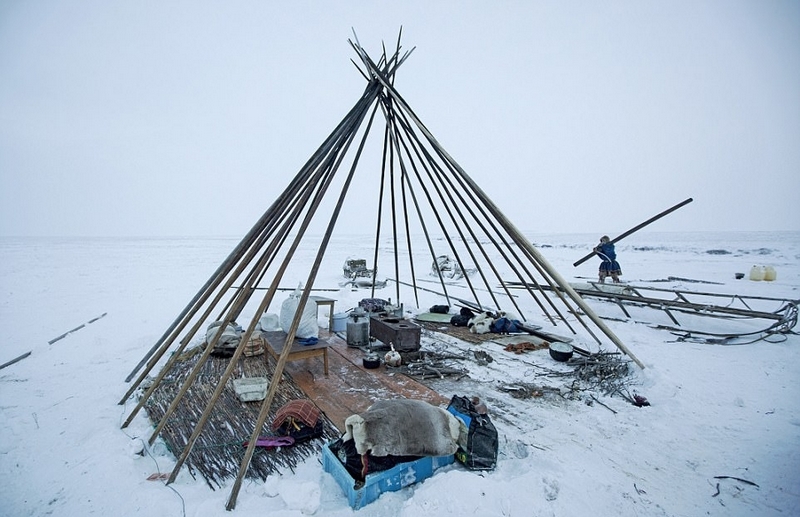 蒂莫西于2016年12月抵达严冬中的亚马尔-涅涅茨自治区,正好赶上当地游牧民族带着驯鹿迁徙。他在那里驻扎了16天之久,长途跋涉达800公里,其间还穿越了冰封的鄂毕河。据悉,亚马尔-涅涅茨区位于西伯利亚最北部,被称为“世界边缘”。当地游牧民族被称作涅涅茨人,长期生活在北极地区。他们驯养驯鹿,并在冬夏牧场之间来回长途迁徙。