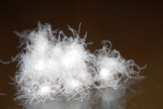 飞丝:由毛片加工粉碎,弹力和保暖性差,有粉末,品质较次,洗后容易结块。