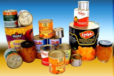 蔬菜、水果罐头:这些罐头多数使用玻璃瓶包装,可以看到内容物。好的罐头应该是内容物均匀、汤汁清亮透明。而不好的罐头内容物大小不一,汤汁颜色也会重很多。