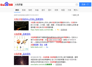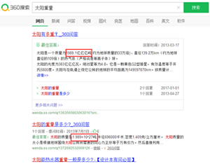 百度浏览器和360浏览器中搜素“太阳重量”的截图