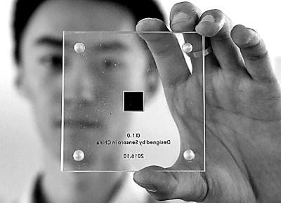 2017年底,一家企业在展示自主研发的芯片,长、宽为11毫米,厚度为1毫米。光明图片/视觉中国