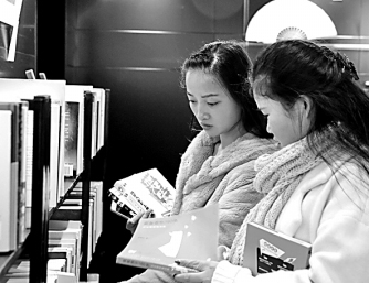 2018年1月21日,读者在北京市中关村创业大街共享书架中查阅共享图书。光明图片/视觉中国