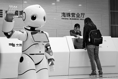 2017年12月26日,广州,智能营业员“优优”在工作。光明图片/视觉中国