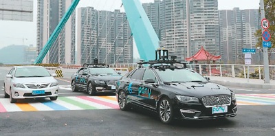中国研发的无人驾驶车队在广州南沙正式上路