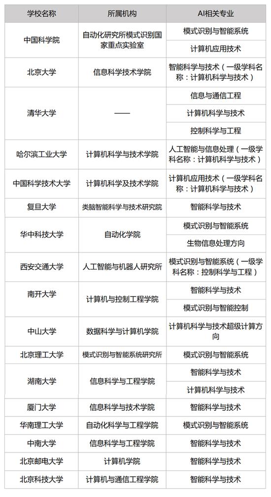 附:中国32家开设人工智能相关专业的高校一览