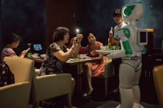 这样的餐厅在上海不只一家,在上海徐家汇有家机器人魔法餐厅,装潢酷炫,机器人也能够送餐到食客的餐桌前,但是,真正的服务员表示,机器人带来的工作比省下来的多,通常是机器人将装有食物的托盘带过来,人类服务员站在它身后,等待食客拍照录像之后,服务人员再将餐品用传统的方式一一摆放到桌子上,所以当被问到是否担心机器人抢走他们的工作时,服务员们都笑了。