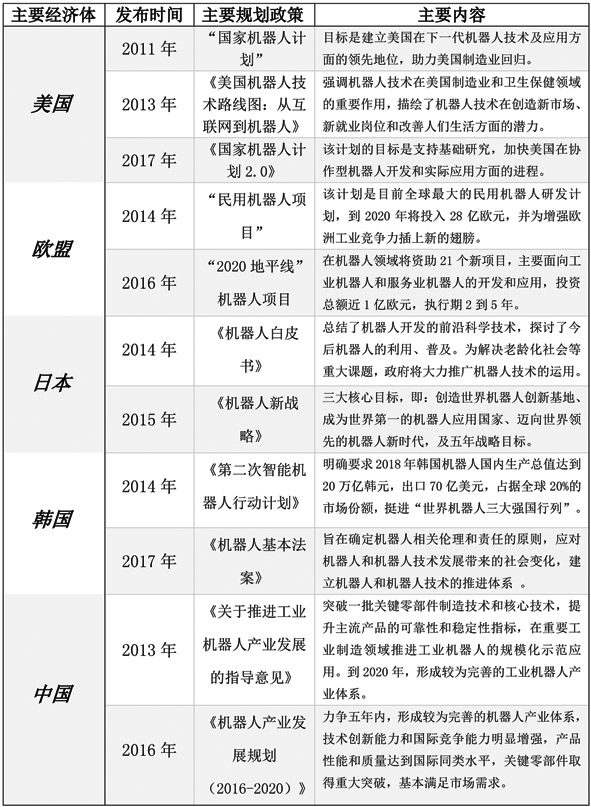 主要经济体机器人相关政策