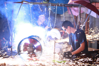 最后,根据设计图稿中的不同需求,在工厂完成零部件制作,组装铁甲,并不断拼装调试直到实战。