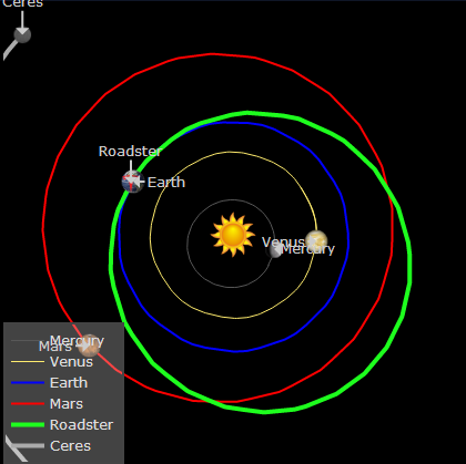 因此它们的实时处境是人们非常关心的。近日,有个叫Ben Pearson的天文工作者就解决了这一问题,他开发了一个名为Whereisroadster.com的网站,可以告诉你Roadster跑车和Starman现在在宇宙的哪个位置。