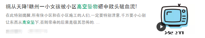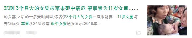 关于高空坠物危害他人健康的案例也很多,近日,一个3个月大的女婴被高空抛下的苹果砸中,先后进行2次脑部手术。可见高空坠物的危害有多大了!