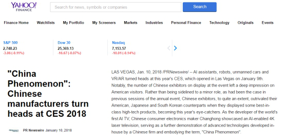 美媒报道,2018年的CES(国际消费类电子产品展览会)上,参展的中国企业在众多热点技术上与美、日、韩的高科技企业开始了正面交锋,甚至引领全球技术发展方向,堪称CES的“中国现象”。