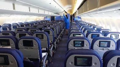 2、收回小桌板、竖直椅背。保证自己这一排及后方乘客逃生通道畅通。
