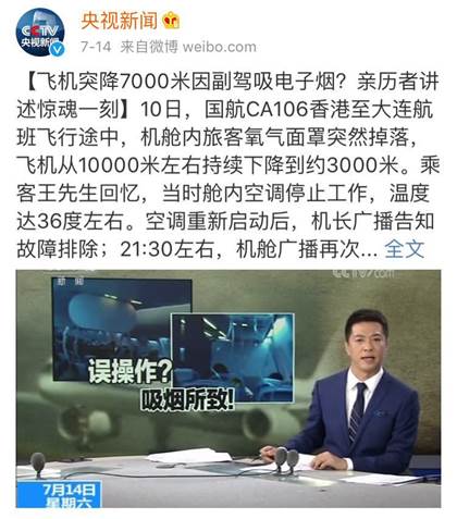 最近我们被国航副机长驾驶舱吸电子烟导致客机突降7000米、氧气面罩下落的新闻刷屏了,除了惊心动魄与追责,我们不禁要问:电子烟监管,何去何从?