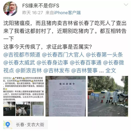 这则新闻一出,微信朋友圈就炸开了锅,网络上立刻出现了不少关于吃了沈阳患病猪肉后死亡的传言。