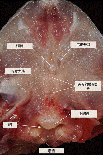 图 7 除去头骨背侧示意图(图片来源:Lőw P et al. , /Atlas of Animal Anatomy and Histology. Springer, Cham, 2016: 173-212.)
