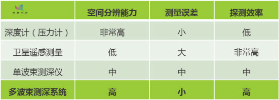 多波束测深系统的接收阵可以同时接收成百上千个特定方向上的回波,也就是说,一次测量就可以获得成百上千个位置的水深。因此,全海深多波束测深是目前既高效又准确的11000米海域(包括深海海域)水深测量方法,其空间分辨能力显著高于卫星遥感测量方法。