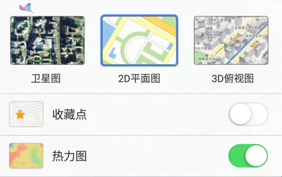 如何获得热力图呢?我们以某地图APP为例,只要打开地图APP,点击地图右上方的所示图标(有两个小方框的图标)就会出现图2的开关图,将热力图开关打开,就会出现热力图的颜色了,把开关图关闭,就可以浏览你关心的地方人流量了。
