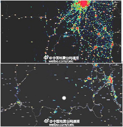 图5 2015年四川乐山地震的热力图(图片来源:中国地震台网速报微博)