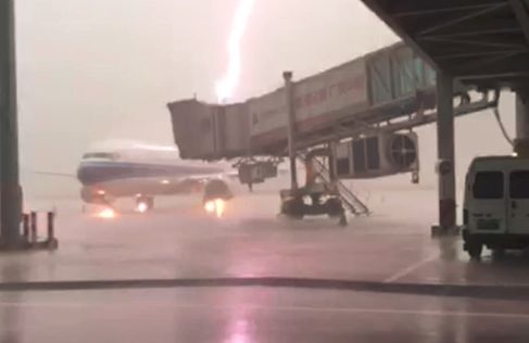 一架南航涂装的客机被雷电击中