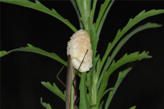 正在产卵的雌性螳螂和卵鞘(作者拍摄)