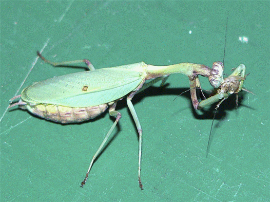 一只雌螳螂在吃一只正与其交配的雄螳螂(引自维基百科)